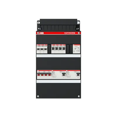 1SPF006908F0312 ABB: Small distribution board equipped Hafonorm MainSw.40A,2xRCD30mA,2+2ways+KT,3Ph+N Consumer Unit