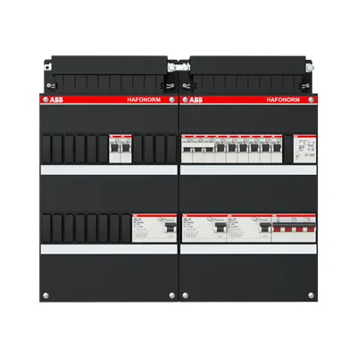 1SPF006908F2690 ABB: Small distribution board equipped Hafonorm MainSw.40A,3xRCD30mA,8ways+KT,3Ph+N Consumer Unit