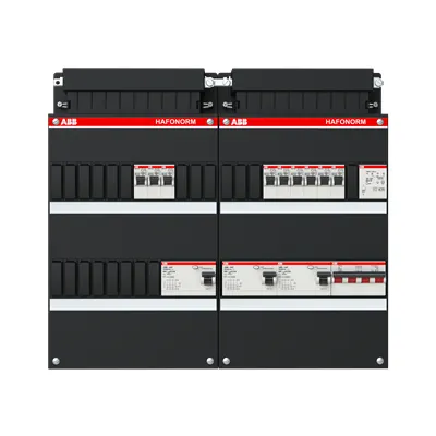 1SPF006908F2700 ABB: Small distribution board equipped Hafonorm MainSw.40A,3xRCD30mA,3+3+3ways+T,3Ph+N Consumer Unit