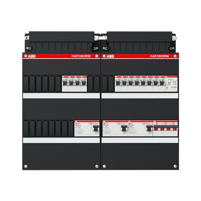 1SPF006908F2827 ABB: Small distribution board equipped Hafonorm MainSw.40A,3xRCD30mA,4+4+4ways+T,3Ph+N Consumer Unit