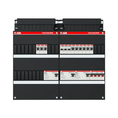 1SPF006909F2700 ABB: Small distribution board equipped Hafonorm MainSw.40A,3xRCD30mA,3+3+3ways+K,3Ph+N Consumer Unit