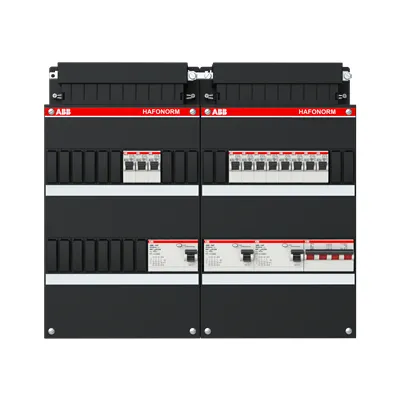 1SPF006909F2718 ABB: Small distribution board equipped Hafonorm MainSw.40A,3xRCD30mA,4+4+3ways,3Ph+N Consumer Unit