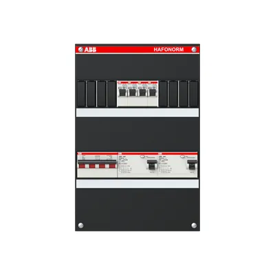 1SPF006909F5115 ABB: Small distribution board equipped Hafonorm MainSw.40A,2xRCD30mA,2+2ways,3Ph+N CU Interior