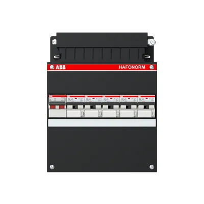 1SPF006915F0196 ABB: Small distribution board equipped Hafonorm MainSw.40A,5x RCBO16A/30mA,1Ph+N Consumer Unit