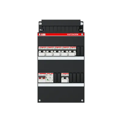 1SPF006915F1198 ABB: Small distribution board equipped Hafonorm MainSw.40A,6x RCBO16A/30mA+SPD,1Ph+N Consumer Unit