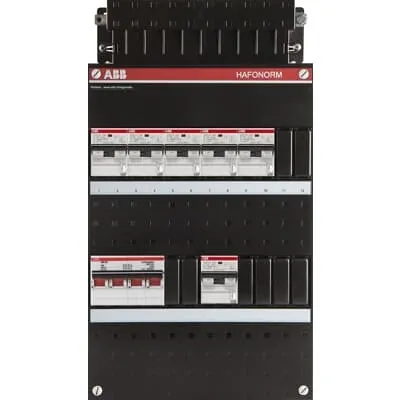 1SPF006916F1172 ABB: Small distribution board equipped Hafonorm MainSw.40A,6x RCBO16A/30mA,+SPD3Ph+N Consumer Unit