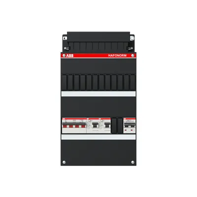 1SPF006972F0003 ABB: Small distribution board equipped Hafonorm 3-phase, main switch 40A 4P 2 RCCB 63A 2P 30 mA 1 RCBO B16 1P+N 300 mA
