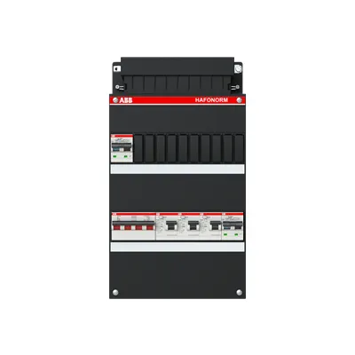 1SPF006972F0015 ABB: Small distribution board equipped Hafonorm 3-phase, main switch 40A 4P 3 RRCB 63A 2P 30 mA 1 RCBO B20 1P+N 300mA 1 RCBO C16 1P+N 30mA