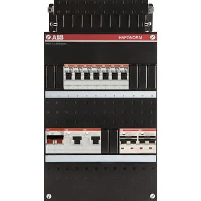 1SPF006972F0021 ABB: Small distribution board equipped Hafonorm 1-phase, main switch 40A 2P 2 RCCB 63A 2P 30 mA, 7 MCB B16 3 RCBO B16 1P+N 300 mA 1 RCBO C16 1P+N 30 mA
