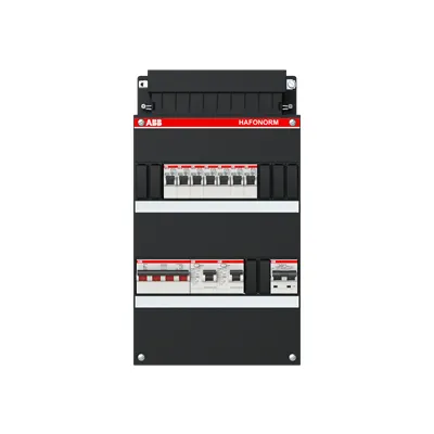 1SPF006972F0024 ABB: Small distribution board equipped Hafonorm 3-phase, main switch 40A 4P 2 RCCB 63A 2P 30 mA, 7 MCB B16 1 RCBO B16 1P+N 300 mA