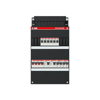 1SPF006972F0026 ABB: Small distribution board equipped Hafonorm 3-phase, main switch 40A 4P 2 RCCB 63A 2P 30 mA, 6 MCB B16 2 RCBO B16 1P+N 300 mA 1 RCBO C16 1P+N 30 mA