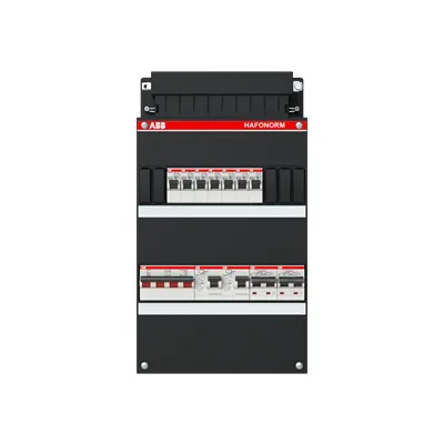 1SPF006972F0027 ABB: Small distribution board equipped Hafonorm 3-phase, main switch 40A 4P 2 RCCB 63A 2P 30 mA, 7 MCB B16 3 RCBO B16 1P+N 300 mA 1 RCBO C16 1P+N 30 mA