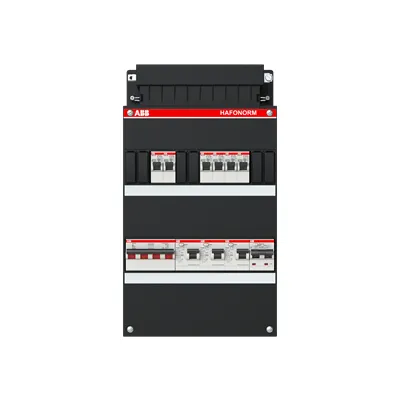 1SPF006972F0029 ABB: Small distribution board equipped Hafonorm 3-phase, main switch 40A 4P 3 RCCB 63A 2P 30 mA, 6 MCB B16 1 RCBO B16 1P+N 300 mA
