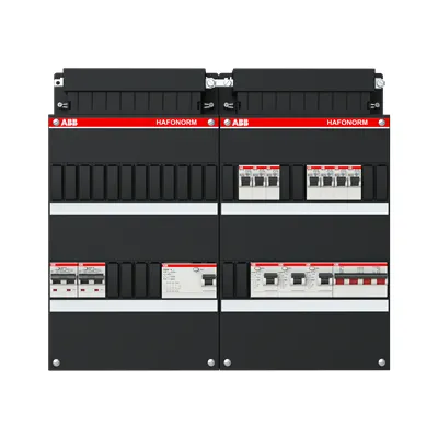 1SPF006972F0037 ABB: Small distribution board equipped Hafonorm 3-ph switch 40A 4P,1 RCCB 63A 4P 30mA 3 RCCB 63A 2P 30mA, 7 MCB B16 1 RCBO B16 1P+N 300 mA 1 RCBO C16 1P+N 30 mA