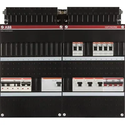 1SPF006972F0043 ABB: Small distribution board equipped Hafonorm 3-ph switch 40A 4P,1 RCCB 63A 4P 30mA 3 RCCB 63A 2P 30mA, 6 MCB B16 1 RCBO B16 3P+N 300 mA 1 RCBO C16 1P+N 30 mA