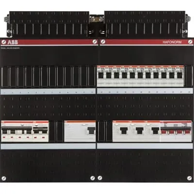1SPF006972F0048 ABB: Small distribution board equipped Hafonorm 3-ph switch 40A 4P,1 RCCB 63A 4P 30mA 3 RCCB 63A 2P 30mA, 11 MCB B16 1 RCBO B16 3P+N 300 mA 1 RCBO C16 1P+N 30 mA
