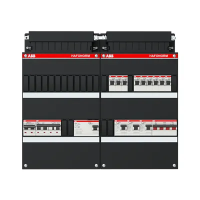 1SPF006972F0053 ABB: Small distribution board equipped Hafonorm 3-ph switch 40A 4P,1 RCCB 63A 4P 30mA 3 RCCB 63A 2P 30mA, 9 MCB B16 1 RCBO B16 1P+N 300 mA 1 RCBO C16 3P+N 30 mA