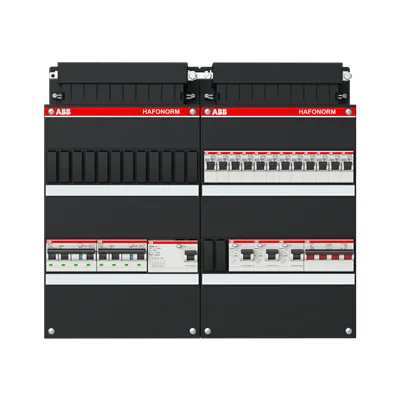 1SPF006972F0063 ABB: Small distribution board equipped Hafonorm 3-ph switch 40A 4P,1 RCCB 63A 4P 30mA 3 RCCB 63A 2P 30mA, 12 MCB B16 1 RCBO B16 3P+N 300 mA 1 RCBO C16 3P+N 30 mA