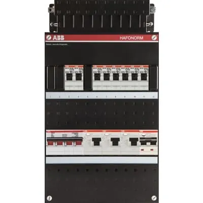 1SPF006972F0066 ABB: Small distribution board equipped Hafonorm 3-phase, main switch 40A 4P 3 RRCB 63A 2P 30 mA, 8 MCB B16 1 RCBO B20 1P+N 300mA 1 RCBO C16 1P+N 30mA