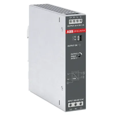 1SVR320361R1000 ABB: The CP-S.1 24/3.0 is a power supply from the new generation CP-S.1 range. The primary switch mode power supply offers a wide range input of 85-264 V AC and 90-277 V DC, rated input voltage is 100-240 V AC, respectively 100-250 V DC. The rated output power is 72 W, rated output current is 3 A at an output voltage of 24 V DC. The output voltage is adjustable within a range of 24 to 28 V DC. The power supply provides a U/I output characteristic with a power reserve of up to 150 % for 5 s and allows parallel operation to increase capacity and to enable redundancy. Redundancy unit and buffer modules are available as accessories.