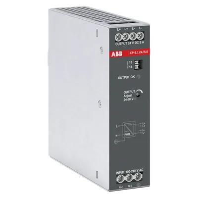 1SVR320561R1000 ABB: The CP-S.1 24/5.0 is a power supply from the new generation CP-S.1 range. The primary switch mode power supply offers a wide range input of 85-264 V AC and 90-277 V DC, rated input voltage is 100-240 V AC, respectively 100-250 V DC. The rated output power is 120 W, rated output current is 5 A at an output voltage of 24 V DC. The output voltage is adjustable within a range of 24 to 28 V DC. The power supply provides a U/I output characteristic with a power reserve of up to 150 % for 5 s and allows parallel operation to increase capacity and to enable redundancy. Further features are: power factor correction acc. to EN 61000-3-2. Redundancy unit and buffer modules are available as accessories.