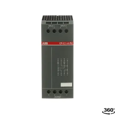 1SVR360060R1001 ABB: The CP-C.1-A-RU is a redundancy unit for CP-C.1 as well as CP-S.1 range power supplies. The input voltage range is 10 - 58 V DC. This unit, with 2 inputs / channels each up to 20 A and an output up to 40 A, provides true redundancy by 100 % decoupling of two parallel connected CP-C.1 range power supplies.