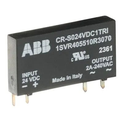 Slim pluggable design saves panel space and simplifies field replacement by enabling plug-in mounting on PCBs or CR-S sockets. This reduces wiring complexity and accelerates service in tight control enclosures, improving overall OPEX. The compact footprint supports dense panel layouts while maintaining reliable isolation for AC loads in automation systems. The TRIAC output delivers 240 VAC at up to 2 A, allowing direct interfacing with common automation loads without additional relays, cutting BOM cost and simplifying wiring diagrams. A 24 V DC control input is compatible with standard PLCs and ABB control circuits, enabling straightforward retrofits and scalable automation architectures. Compliance with IP00, IEC 61000-6-2/3, and RoHS standards minimizes regulatory risk and ensures predictable performance in harsh factory environments. Accessory sockets, separators, jumpers, and markers enhance installation ergonomics and lifecycle management, while the compact dimensions (15 mm width, 28 mm depth, 5 mm height) support modular panel design.