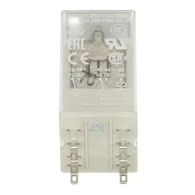 Feature → Business Impact → Application: The CR-M048DC2 is a pluggable miniature interface relay that mounts on a DIN rail and snaps into an ABB CR-M socket, enabling modular control panels with reduced maintenance time and minimal downtime when replacing worn relays in automated lines. This translates to lower labor costs and faster line recovery in manufacturing environments. Feature → Fast, reliable actuation → Application: With a 48 V DC coil and a SPDT output rated up to 250 V AC / 12 A, the device supports switching multiple circuits from a single input signal, ideal for PLC or control-system I/O expansion in packaging, material handling, and process automation. Feature → Integrated test button and LED → Application: The built‑in test button allows manual actuation and the LED provides immediate energization feedback, reducing commissioning time and improving setup accuracy in reconfigurable automation cells. Feature → Flat-pin terminal connections → Application: Flat-Pin connections streamline installation with standard sockets and accessories, enabling quick field wiring and straightforward replacement without custom harnesses, which lowers inventory complexity. Feature → Broad operating conditions → Application: The relay operates from -40 to +70 °C with IP40 protection and up to 2000 m altitude, ensuring dependable performance on factory floors, in machine rooms, and in rugged environments. Feature → Certifications and compliance → Application: UL 508, CE, UKCA, CSA, UR, and RoHS conformity support global deployment in medical, food, and heavy industrial settings while maintaining supply-chain compliance and risk mitigation.