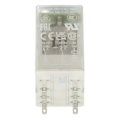 125 V DC control supply enables direct PLC compatibility and fast system integration, reducing wiring complexity and panel footprint while delivering dependable energization to 12 A rated outputs. This translates into measurable efficiency gains in machine start-up times and reduced commissioning costs when wiring multiple circuits. The 2 c/o SPDT outputs support versatile logic configurations, enabling a single input to manage multiple loads and simplify fault diagnostics in control circuits. An integrated LED indicator provides instantaneous status feedback, improving maintenance planning and reducing troubleshooting time by visually confirming coil energization. The built-in test button supports manual actuation for commissioning checks without energizing the entire system, minimizing risk during startup. Snap-on DIN rail mounting with flat-pin connections accelerates installation and simplifies field servicing, while IP40 protection ensures suitability for typical industrial environments. Temperature tolerance from -40 to +70 °C and 2000 m altitude capability help maintain reliability in diverse sites, and the broad standards matrix (UL 508, IEC/EN 63000, IEC/EN 61810-1, CAN/CSA C22.2 No.14) supports global compliance. Compatibility with standard sockets, logic sockets, and accessories streamlines lifecycle management and spare-part strategies for mature automation lines.