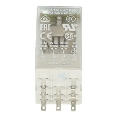 This relay carries CE and UL/CSA declarations, UKCA labeling, and RoHS compliance. It meets CAN/CSA C22.2 No.14, IEC/EN 63000, IEC/EN 61810-1, and UL 508 requirements, with a robust IP40 rating suitable for general industrial environments and regulatory assurance for global deployments.