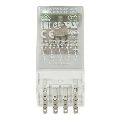 Feature: Pluggable CR-M060DC4L with a 60 V DC coil and integrated LED. Business Impact: Enables quick replacement and fast visual status checks, reducing commissioning time and downtime. Application: Ideal for DC control logic in automation panels where rapid fault isolation is critical. Feature: Four SPDT contacts rated at 250 V AC and 6 A. Business Impact: Supports multi-circuit switching from a single input, increasing channel density and reducing component count. Application: Conveyor lines, packaging equipment and other multi-load control tasks. Feature: DIN rail snap-on mounting with ABB CR-M sockets. Business Impact: Streamlined assembly and serviceability, enabling modular cabinet design and easy spare-part management. Application: Standardized control cabinets with scalable I/O expansion. Feature: IP40 enclosure and operation from -40 to +70 °C. Business Impact: Reliable operation in demanding environments with minimal derating, lowering field failure risk. Application: Industrial environments, panel assemblies, and robotics interfaces. Feature: Comprehensive certifications (CE, UKCA, UL/CSA, cUR, LR, UR, EAC) and RoHS compliance. Business Impact: Global deployment without requalification, reducing procurement risk and lead times. Application: International factories and cross-border supply chains with strict compliance requirements.