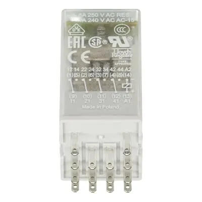 Feature: Pluggable CR-M interface relay design enables quick swaps in control cabinets. Business Impact: Reduces downtime and wiring complexity, accelerating maintenance tasks and enabling modular panel upgrades. Application: Machine control panels in automated lines. | Feature: 24 V DC rated control supply with 4 c/o SPDT outputs. Business Impact: Supports multiple circuit control from a single input, increasing channel availability while maintaining safety. Application: Industrial process interlocks and machine logic. | Feature: Integrated diode for surge suppression and LED indicator for coil energization. Business Impact: Improves fault detection and protects sensitive control electronics, with at-a-glance status during commissioning. Application: Real-time status monitoring in robotics and packaging lines. | Feature: Snap-on DIN rail mounting with flat-pin terminals. Business Impact: Streamlines installation, reduces assembly time, and ensures robust, vibration-resistant wiring. Application: Panel builders and OEM integrators deploying CR-M compatible components. | Feature: Wide operating range and compliance—IP40, -40 to +70 °C, 250 V insulation, UL/CSA and CE. Business Impact: Reliable performance in harsh industrial environments with global approvals, lowering risk and compliance overhead. Application: Heavy-duty automation environments and cross-border deployments.