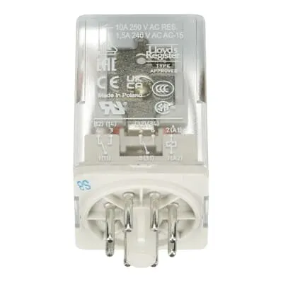 The pluggable design integrates smoothly with CR-U sockets and DIN-rail mounting, enabling fast swaps and minimal panel downtime; this translates to tangible maintenance cost reductions and improved equipment availability in automation cabinets. The 24 V DC coil with a built-in LED indicator and a mechanical test button delivers immediate feedback during commissioning and routine checks, boosting confidence in control sequences and reducing trial-and-error testing time in the field. With two SPDT contacts rated up to 250 V AC and 10 A, you can reliably switch multiple circuits from a single input, improving wiring economy and system reliability for machine control and process interlocks. Durable circular pin terminals and rugged construction ensure long service life in repetitive-use environments, lowering replacement frequency and operational risk. Accessory ecosystems including standard sockets, logic sockets, and markers enable complete, plug-and-play installation with CAD files for accurate panel layout. RoHS compliance and extensive standards support assist with regulatory conformity in diverse markets. The device is compatible with 24 V DC control schemes commonly used in automation, enabling seamless integration into existing control architectures without extensive rewiring.