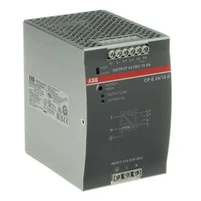 1SVR427035R0000 ABB: The CP-E 24/10.0 is a power supply from the CP-E range. The primary switch mode power supply offers a wide range input of 90-132 V AC, 180-264 V AC and 210-375 V DC, rated input voltage is 115 or 230 V AC (auto select). The rated output power is 240 W, rated output current is 10 A at an output voltage of 24 V DC. The output voltage is adjustable within a range of 22.5 to 28.5 V DC. The power supply provides an U/I output characteristic. In order to increase capacity, up to 3 units can be connected in parallel. A redundancy unit is available as accessory.