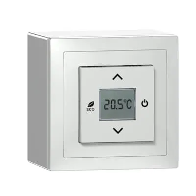 2CCA375518R0001 ABB: ABB free@home Sidus, room temperature controller, surface mounting, wireless, white shiny, consisting of: insert, cover, front frame, mounting plate 70x70 mm, cover frame 71x71 mm, surface-mounted housing 48 mm