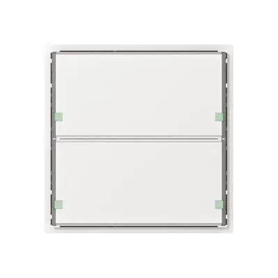 This module excels in indoor control panels for manufacturing, packaging, and process automation where a clean, two-button input is required. Its IP20 rating, white RAL 9010 finish, and flush-mounted form factor make it ideal for front-face readability in machine enclosures, control consoles, and wall-mounted panels, while maintaining a compact footprint for space-constrained installations.