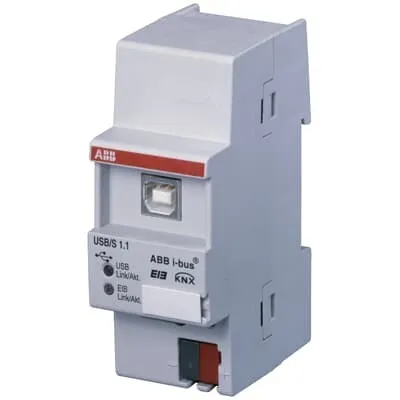 2CDG110008R0011 ABB: The USB interface enables the communication between the PC and the EIB/KNX system. Display of data transfer via EIB LED and USB LED. The USB interface can be used starting with ETS 3.0.