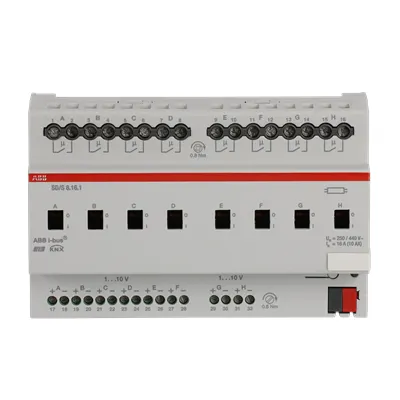 2CDG110081R0011 ABB: MDRC Devices for switching and dimming of 2, 4 or 8 independent groups of luminaries with electrical ballasts and 1-10V control inputs. Per channel a potential free relay can be switched on or off via the ABB i-bus® or manually. Manual and visual operation is included. A power supply is not necessary.