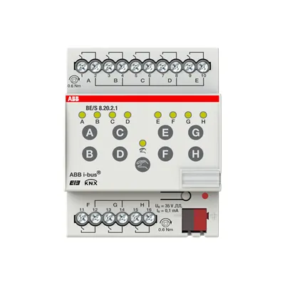 2CDG110092R0011 ABB: The device interrogates 8 floating contacts using an internally generated scanning voltage. State inputs via 8 LEDs. Max. 8 signals are detectable. Each channel one push button for manual operation. Supplied by ABB i-bus®.