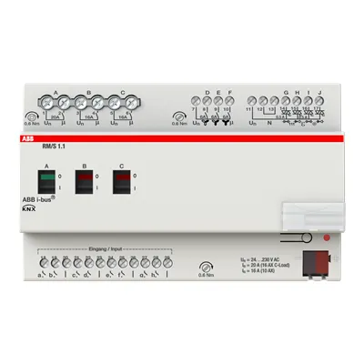 2CDG110094R0011 ABB: Device to control of apartment ranges with bath, typically in hotels and small apartments. 8 inputs (binary), 3 outputs (relay), 3 fan outputs and 2x2 electronic outputs for valve drives. Device is preconfigured. Only VD3-File or higher exists.