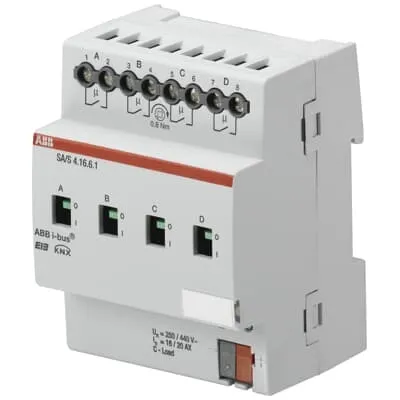 2CDG110113R0011 ABB: Uses potential free contacts to switch 4 independent electrical loads via the ABB i-bus®. Each output has an independent load current detection. Manual operation and display of the switching state of the contacts. The 16/20AX, 16A-AC3 (C-load) device is especially suited for loads with high surge currents e.g. flourescent lighting (AX) acc. EN 60669.