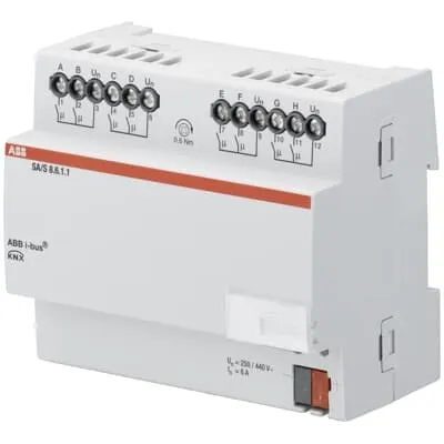 2CDG110153R0011 ABB: Uses potential free contacts to switch 8 independent electrical loads via the ABB i-bus®. Every 2 contacts have a common supply phase. The 6A-AC3 device is especially suited to switch resistive, inductive or capacitive loads.