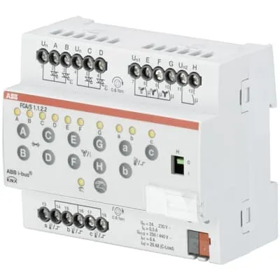 2CDG110194R0011 ABB: To control typical fan coil units by four electronic outputs for thermoelectric or motor-driven valve drives and a 3 channel output for a up to 3-stage fan. Also a additional load (up to 16 A) like a auxiliary heating can be controlled by a switch output. Window sensors, condensed water sensors and temperature sensors can be connected to the three universal inputs. The device has a manual operation for quick maintenance. The Fan Coil Actuator supports the ABB i-bus Tool for advanced diagnosis and improved commissioning.