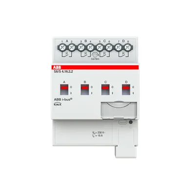2CDG110262R0011 ABB: The switch actuator uses potential free contacts to switch 4 independent electrical loads via the ABB i-bus®. Manual operation and display of the switching state of the contacts. The 16 A device is especially suited for resistive loads.