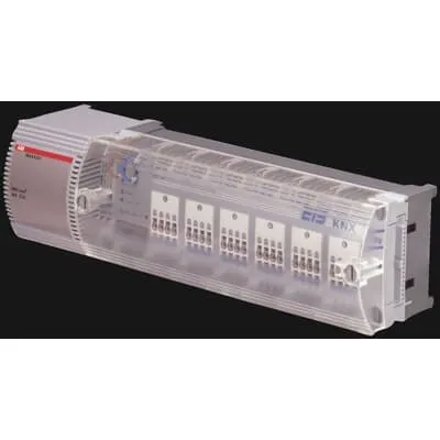 2CDG120032R0011 ABB: Controls up to 13 thermoelectric valve drives (24 V), max. 4 per channel. Installation in heating circuit distribution systems where the application of a triac ensures noiseless switching of the drives. Mains plug on the transformer (230 V).