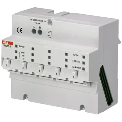 2CDG120034R0011 ABB: IP Switch Master for MDRC installation. For networking of up to 5 end devices. Can be extended to 10 end devices by side connection of the IP Switch Slave (ISS/S). One of the ports is a Gigabit Ethernet enabled and can serve as an uplink port.