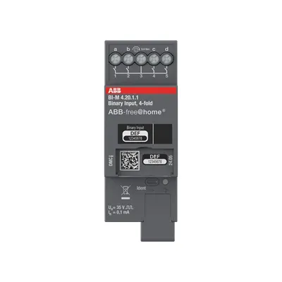 2CDG510014R0011 ABB: Scans floating contacts with internally generated scanning voltage. No external Voltage needed. The binary inputs enable detection of independent input signals. Each channel can be connected with conventional push-buttons or auxiliary contacts. The information can be used to control free@home actuators or to indicate status information. The devices are powered via the free@home bus and do not require an additional power supply.