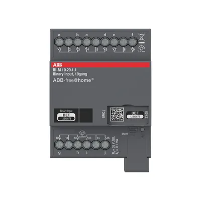 2CDG510015R0011 ABB: Scans floating contacts with internally generated scanning voltage. No external Voltage needed. The binary inputs enable detection of independent input signals. Each channel can be connected with conventional push-buttons or auxiliary contacts. The information can be used to control free@home actuators or to indicate status information. The devices are powered via the free@home bus and do not require an additional power supply.