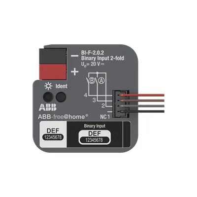 2CDG510023R0011 ABB: 2 channels can be connected with conventional push-buttons or auxiliary contacts. The information of contact scanning can be used to control free@home actuators or for indicate status information. The contact scanning voltage are made available by binary input device. The devices are supplied by free@home bus, there is no additional power supply neccessary. The compact design allows the installation of conventionell 60 mm installation box or device box.