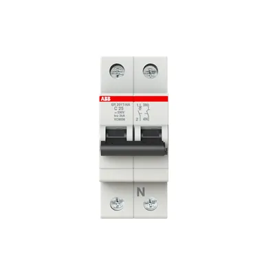 2CDS231170R0254 ABB: SR201T-C25NA is part of SR200T range. SR200T has two different tripping mechanisms, the delayed thermal tripping mechanism for overload protection and the electromechanic tripping mechanism for short circuit protection. They are available in C-characteristic, different pole configurations and rated currents up to 63A. All MCBs of the product range SR200T achive a breaking capacity of 3kA and comply with SANS 556-1 and SNS IEC 60947-2.